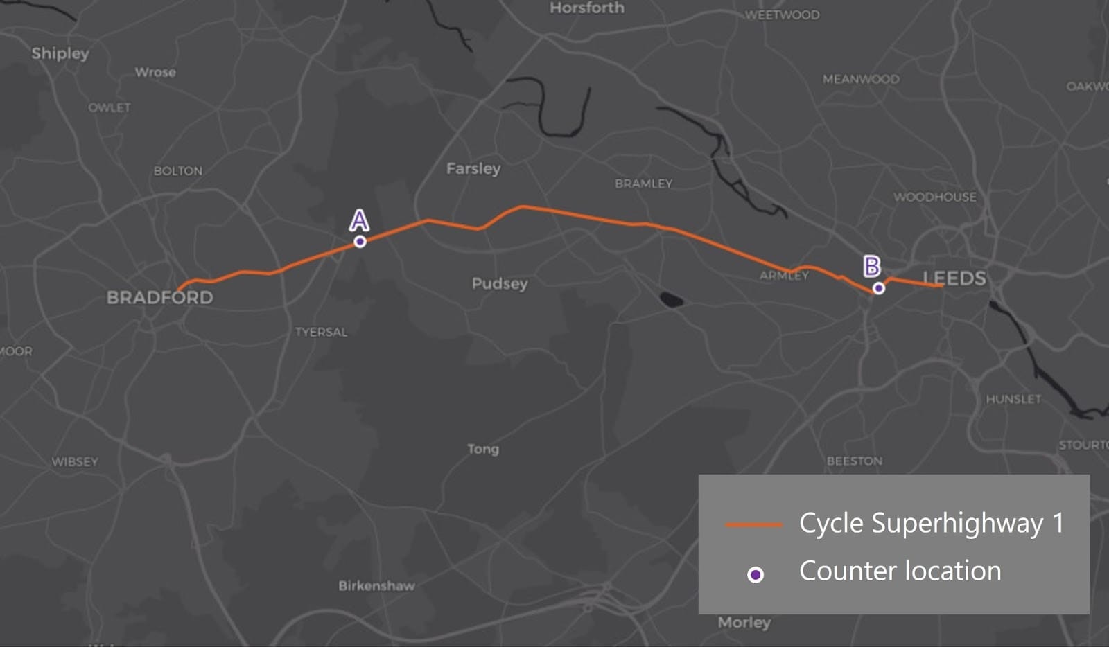 One way to answer that question is to look at the lanes that have been there for a bit longer — are they having an impact on how people travel? This leads me to the Cycle Superhighway 1 (or CS1, for short). In June, the CS1, which runs between Bradford and Leeds city centres, will celebrate its 10th birthday. Helpfully, Leeds council collects live data on its usage – more on that later. But, before crunching the numbers, I decided to give it a go myself.